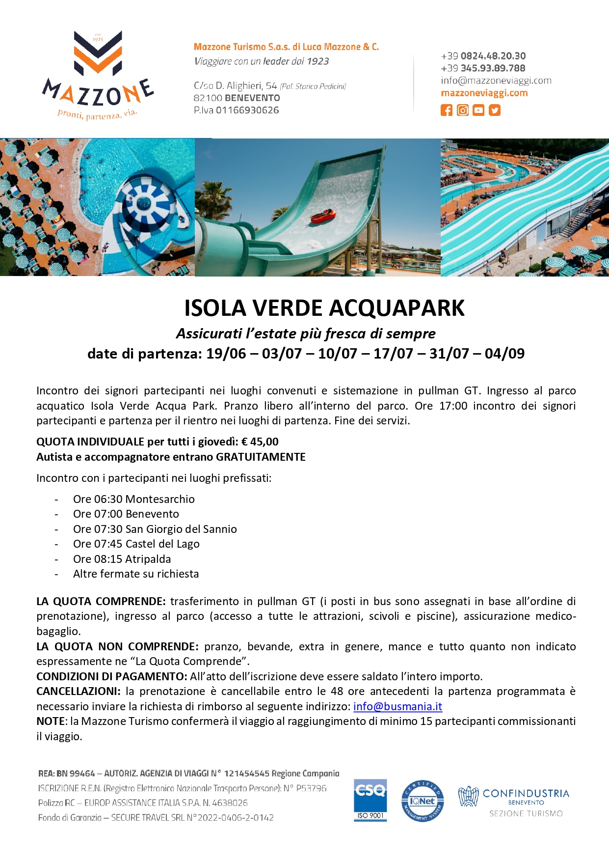 Il divertimento e la spensieratezza sono al centro dell’esperienza di Isola Verde Acquapark, il parco acquatico ideale per vivere una giornata all’insegna del relax e del fresco nelle torride giornate estive.
